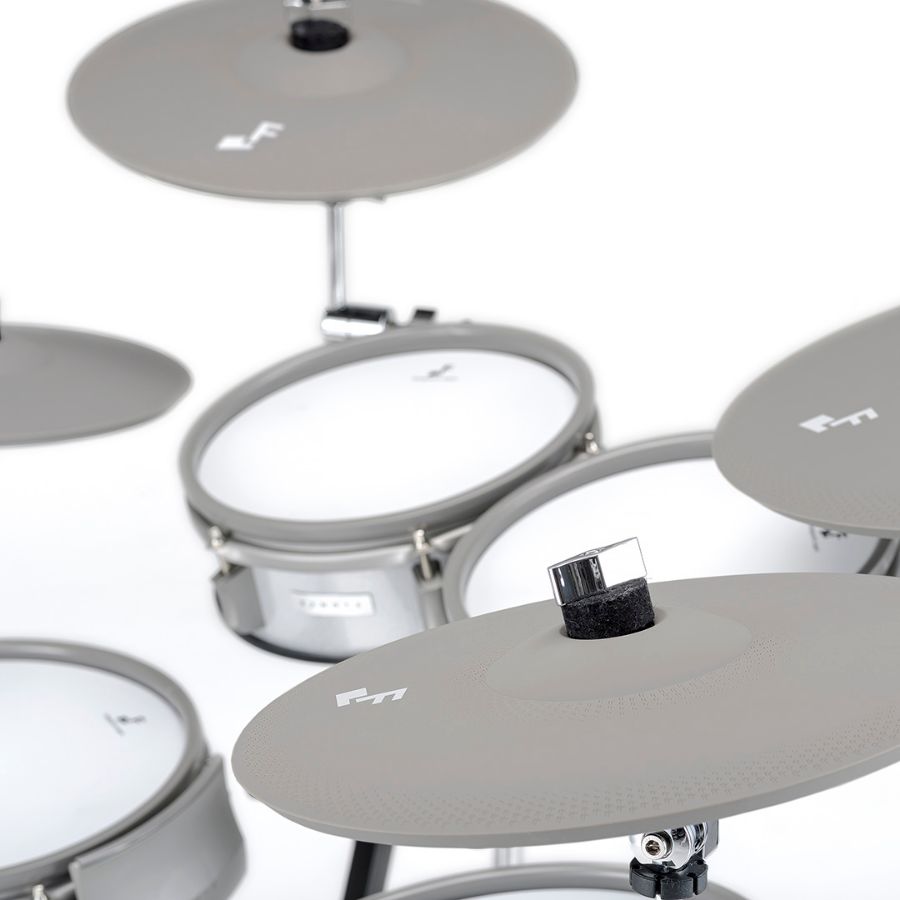 - Элегантная отделка и правильные пропорции 6-слойного корпуса из березы, в сочетании с двухслойной кевларовой сеткой (3 зоны на малом барабане и 2 зоны на томах) помогают воссоздать натуральное акустическое звучание.